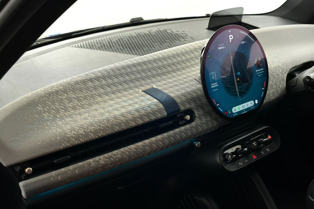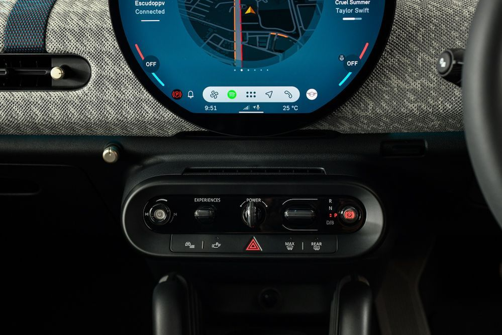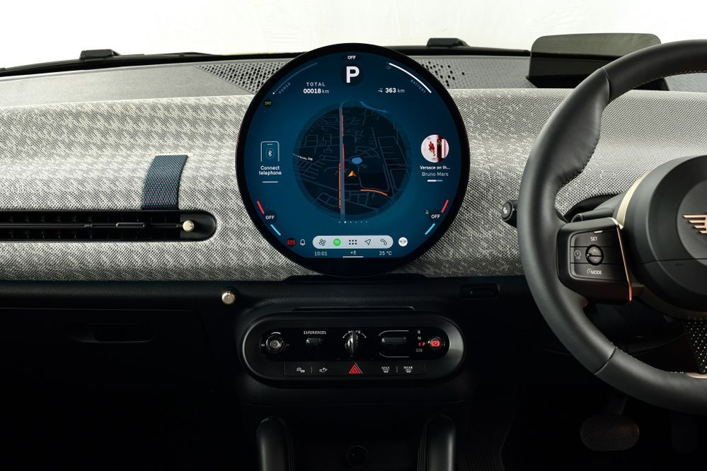 หน้าจอแสดงผล OLED ทรงกลม ความละเอียดสูง คมชัด มีฟังก์ชันการทำงานที่ครอบคลุมทุกการใช้งาน โดยหน้าจอแสดงผล MINI Interaction unit จะอยู่ที่บริเวณกึ่งกลางคอนโซลด้านหน้ารถ ได้รับการออกแบบมาให้อยู่ใกล้กับตำแหน่งที่นั่งของคนขับมากขึ้น ขนาดเส้นผ่าศูนย์กลาง 240 มม. เพื่อให้ผู้ขับขี่สามารถใช้งานหน้าจอได้อย่างสะดวก นอกจากนี้ MINI Interaction Unit ยังทำงานบนระบบปฏิบัติการ MINI Operation System 9 ที่ตอบสนองการสั่งงานผ่านหน้าจอสัมผัส และการสั่งงานด้วยเสียงได้อย่างรวดเร็วมีคุณภาพ หน้าจอจะแสดงผลข้อมูลที่จำเป็นสำหรับการขับขี่ เช่น อัตราความเร็วในการขับขี่ ระดับพลังงานแบตเตอรี่ เป็นต้น ซึ่งผู้ใช้ยังสามารถเข้าถึงฟังก์ชันด้านการนำทาง มีเดีย โทรศัพท์ และดูข้อมูลสภาพอากาศได้ง่าย ไม่ต่างกับการใช้งานสมาร์ทโฟน
