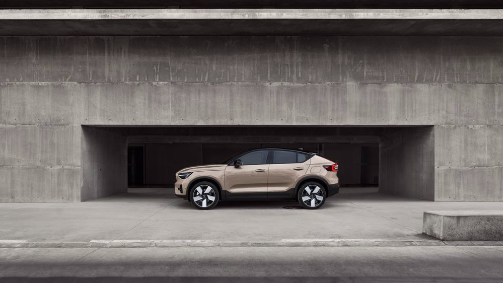 ด้านข้างของ Volvo EC40 เห็นได้ชัดถึงแนวท้ายหลังคาที่มีความลาดลงตามสไตล์ Coupe ส่วนตัวรถก็ยังยกสูงขึ้นมาแบบรถยนต์ SUV จัดว่าดีไซน์การออกแบบแนวนี้ได้รับความนิยมมากไม่น้อยเลยทีเดียว โดยมีรถยนต์หลายรุ่นในตลาดมากๆ ที่ใช้ลักษณะการออกแบบแนวนี้