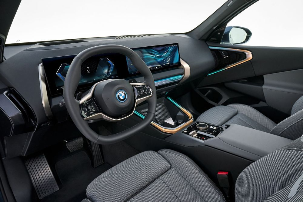 ภายในออกแบบด้วยสีสันสดใสตามแบบฉบับของรุ่น BMW X มาพร้อมกับแผงคอนโซลหน้าจรดขอบประตูยาวโอบล้อมผู้ขับและผู้โดยสารตอนหน้าแบบไร้รอยต่อ ติดตั้งจอแสดงผลขนาด 12.3นิ้ว และจอควบคุมขนาด 14.9 นิ้ว โค้งเข้าหาผู้ขับแบบ Interaction Bar พวงมาลัยและคันเกียร์ได้รับการออกแบบใหม่ รายล้อมด้วยไฟ Ambient Light มีช่องวางแก้วพร้อมช่องเก็บของ รวมถึงมี Wireless Charger ให้ด้วยบริเวณคอนโซลกลาง พื้นผิวและเบาะในรุ่นมาตรฐานใช้วัสดุจาก Econeer ซึ่งผลิตจากวัสดุที่รีไซเคิลได้  ส่วน BMW Individual (ออปชั่นเสริม) มีหนังให้เลือก 3 แบบได้แก่ Merino, Veganza และ Alcantara ในส่วนแพ็คเกจ M Performance จะใช้เบาะที่ผลิตจากโพลีเอสเตอร์รีไซเคิลที่มีการออกแบบด้วยด้ายที่มีเนื้อผิวแบบ High-Class เป็นครั้งแรก