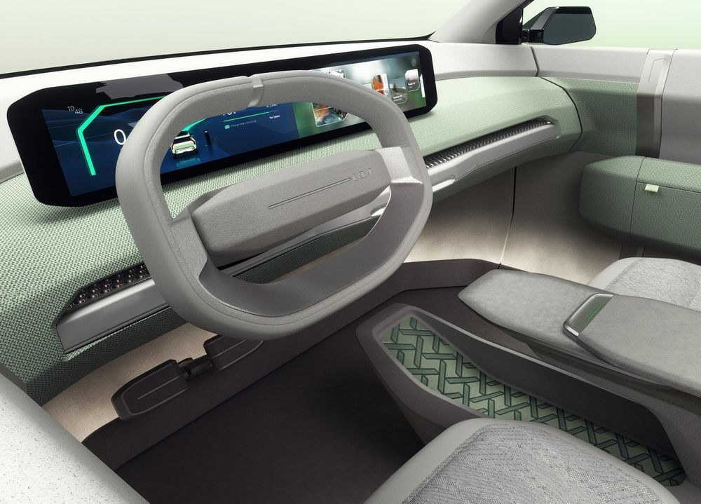จากภาพของรถยนต์ต้นแบบคิดว่าอาจจะใช้ Mood & Tone ในการตกแต่ง แต่แน่นอนว่าคงติดตั้งปุ่มฟังก์ชันรวมถึงอุปกรณ์ต่างๆ ภายในแบบรุ่นพี่อย่าง EV9 รวมถึงคอนโซลหน้า ช่องแอร์ แป้นเหยียบแบบรถยนต์ทั่วไป แผงประตู และพวงมาลัยน่าจะได้รับการออกแบบใหม่สำหรับการใช้งานได้จริง