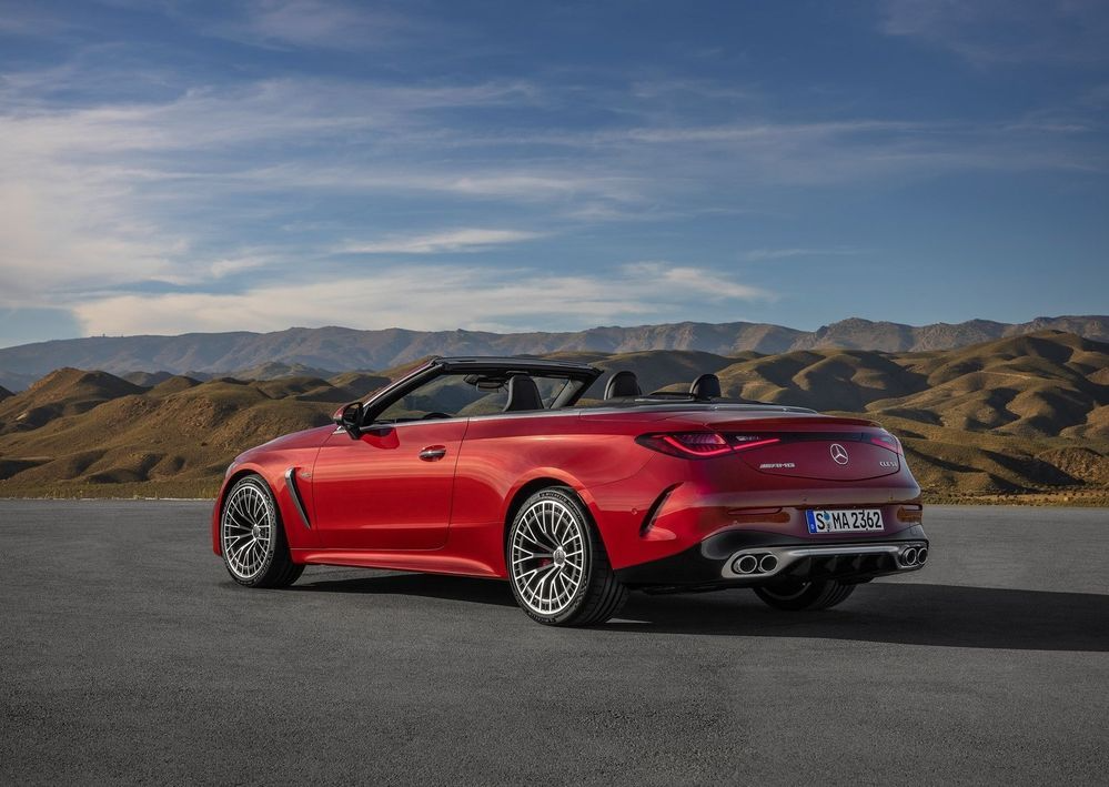 หลังคาแบบซอฟต์ท็อปมีสีให้เลือก 3 สี ได้แก่ สีดำ แดง และเทา ซึ่งความพิเศษของหลังคาชนิดนี้มีชั้นอะคูสติกที่ช่วยลดเสียงดังจากภายนอก พร้อมกับการพับเก็บในเวลาแค่ 20 วินาทีที่ความเร็วสูงสุด 60 กิโลเมตร / ชั่วโมง นอกจากนี้ยังติดตั้งแผงเบี่ยงลมปรับไฟฟ้าไว้ที่ด้านหลังเบาะ เพื่อช่วยไม่ให้ลมตีไปที่หน้าของผู้ขับขี่และผู้โดยสารขณะขับรถ ยิ่งไปกว่านั้นยังมีระบบ Airscarf ที่อุ่นคอสำหรับผู้โดยสารเพื่อใช้ในกรณีขับขี่ในฤดูหนาวอีกด้วย สิ่งที่แตกต่างจากในรุ่น CLE coupe คือ หน้าจออินโฟเทนเมนต์ขนาด 11.9 นิ้ว ติดตั้งในตำแหน่งที่เอียงเข้าหาผู้ขับขี่ เพื่อช่วยลดแสงสะท้อนเมื่อเปิดหลังคา เบาะที่นั่งได้รับการเคลือบพิเศษเพื่อช่วยลดการดูดซับความร้อนจากแสงอาทิตย์