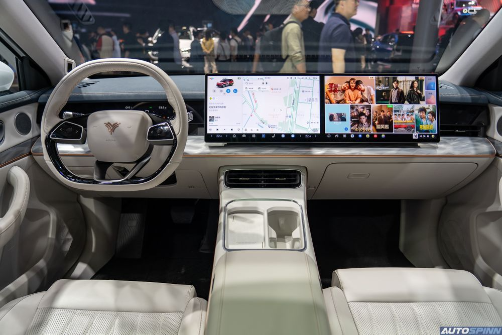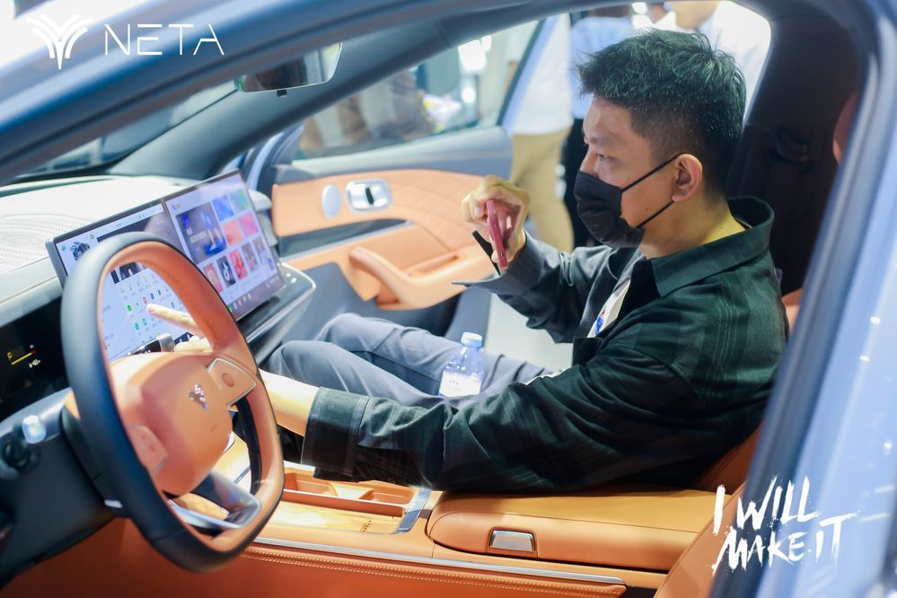 ภายในห้องโดยสารมี 2 เฉดสีให้เลือก ได้แก่ สีขาว Mousse White และสีน้ำตาล Maillard Brown ส่วนตัวเลดี้ชอบสีขาวนะดูดีมาก แต่อาจจะดูแลรักษาลำบากนิดนึง ติดตั้งแผงแดชบอร์ด LCD ที่ตำแหน่งหลังพวงมาลัยทรง D Shape มาพร้อมกับชุดเกียร์แบบคันโยก ทางด้านหน้าจอบริเวณตรงกลางที่เห็นเป็นจอยาวๆ จริงๆ แบ่งออกเป็น 2 จอคู่ ขนาด 15.6 นิ้ว ซึ่งจอทางด้านซ้ายไว้สำหรับควบคุมระบบปฏิบัติการต่างๆ ทั้งหมดของตัวรถ ทางด้านขวาจะเป็นหน้าจออินโฟเทนเมนต์ที่มีความละเอียดระดับ 2K ที่ขับเคลื่อนโดยชิป Qualcomm Snapdragon 8155 มาพร้อมกับระบบเสียงและว VDO ของ NETA Sky Theater ทำงานร่วมกับลำโพงรอบทิศทาง 16 ตำแหน่ง นอกจากนี้ยังมาพร้อมกับสิ่งอำนวยความสะดวกมากมาย อาทิ โหมดงีบหลับ, โหมดสปา, โหมดแคมป์ปิ้ง, โหมดกลางแจ้ง, โหมดคาราโอเกะ และโหมดสัตว์เลี้ยง