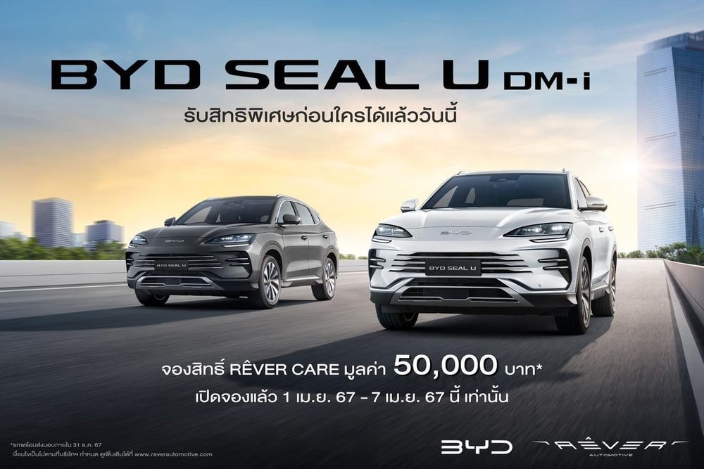 BYD SEAL U DM-i รถยนต์ C-SUV ขนาดใหญ่ 5 ที่นั่ง 5 ประตู เทคโนโลยี Plug-in Hybrid ที่มาพร้อมความสะดวกสบายระดับพรีเมียม เทคโนโลยีอัจฉริยะและการขับขี่เสมือนรถยนต์ไฟฟ้ามากที่สุด พร้อมเปิดรับจองสิทธิ์ RÊVER Care รับสิทธิประโยชน์ส่วนลดมูลค่ารวมกว่า 50,000 บาท