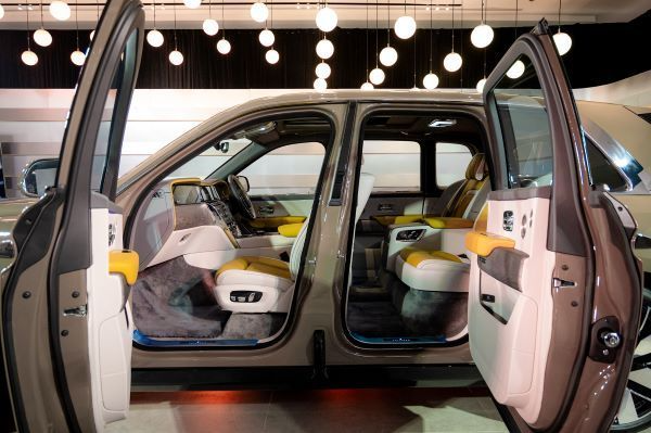 หรือหากลูกค้าต้องการสร้างคำหรือภาพอื่นๆ ก็สามารถสั่งได้ ถัดมาด้านขวากันเป็นอีกไฮไลท์สำคัญ คือ ‘Spirit of Ecstasy Clock Cabinet’ หรือนาฬิกาแบบใหม่ ที่มาพร้อมนางฟ้าเรืองแสง ผลิตจากสเตนเลสทั้งชิ้นดูสวยงามและหรูหราขั้นสูงสุด เมื่อผู้โดยสารเปิดประตูรถ มาตรวัดหน้าผู้ขับจะสว่างขึ้น ตามด้วยจอแสดงผลตรงกลาง, แดชบอร์ดเรืองแสง ก่อนนำสายตาสู่นางฟ้าบริเวณฐานนาฬิกา เกิดเป็นการแสดงแสงสีแบบไฮ-คลาส เป็นผลจากการพัฒนากว่า 4 ปี