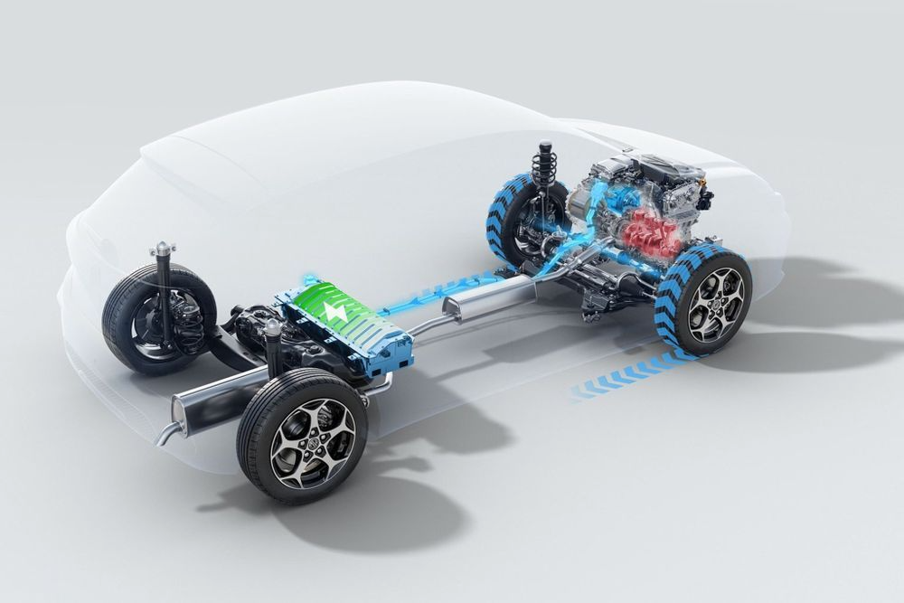 เมื่อเครื่องยนต์ ทำงานร่วมกับมอเตอร์ไฟฟ้า จะได้พละกำลังสูงสุด 194 แรงม้า ส่งกำลังผ่านเกียร์อัตโนมัติ แบตเตอรี่ Lithium-ion 1.83 kWh ปล่อย CO2 ที่ 100 g./km.