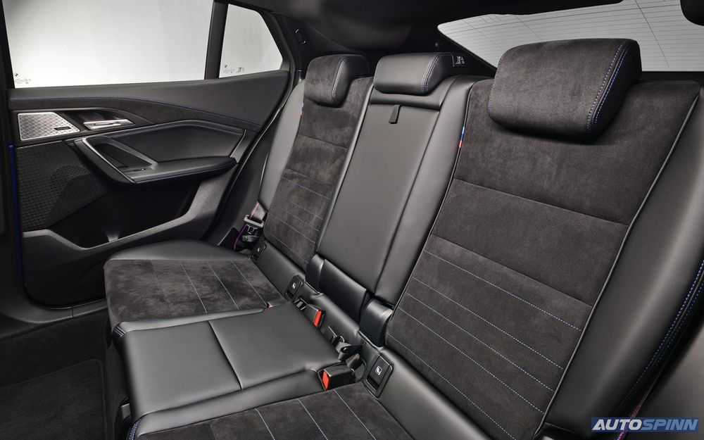 ภายในห้องโดยสารของบีเอ็มดับเบิลยู iX2 xDrive30 M Sport ใหม่ นำเสนอบรรยากาศพรีเมียมทันสมัยพร้อมให้ผู้ขับขี่ได้สัมผัสกับกลิ่นอายความสปอร์ต ภายในตกแต่งด้วยวัสดุตกแต่งแบบ Aluminium พร้อมแถบกราฟิก และเบาะที่นั่งสปอร์ตหุ้มหนัง M Alcantara/Veganza ผสานสีดำ ตัดกับตะเข็บสีน้ำเงิน คอนโซลด้านบนบุด้วยหนัง Sensatec นอกจากนั้น อุปกรณ์ที่ติดตั้งมาเป็นมาตรฐาน ได้แก่ เบาะนั่งปรับไฟฟ้าพร้อมระบบจำตำแหน่ง แบบ M Sport สำหรับผู้ขับขี่และผู้โดยสารตอนหน้า หลังคากระจกพาโนรามาที่ออกแบบขึ้นมาใหม่ยังให้ความรู้สึกโอ่อ่า กว้างขวางและสะดวกสบาย พวงมาลัยมัลติฟังก์ชั่น ชุดกระจกมองข้าง และกระจกมองหลังพร้อมฟังก์ชั่นป้องกันตาพร่า (Anti-Dazzle) ยังติดตั้งมาในรถยนต์รุ่นนี้ด้วย ฟังก์ชันกล้องภายในรถยนต์ช่วยให้ผู้โดยสารสามารถถ่ายภาพภายในรถขณะที่จอดอยู่ได้ นอกจากนี้ บีเอ็มดับเบิลยู iX2 xDrive30 M Sport ใหม่ ยังมาพร้อมกับระบบปลดล็อกประตูอัจฉริยะ (Comfort Access System) ให้ผู้ขับขี่สามารถปลดล็อกและสตาร์ทรถได้โดยไม่ต้องใช้กุญแจ