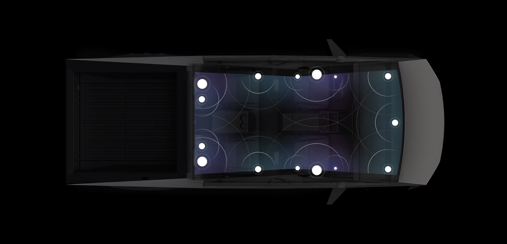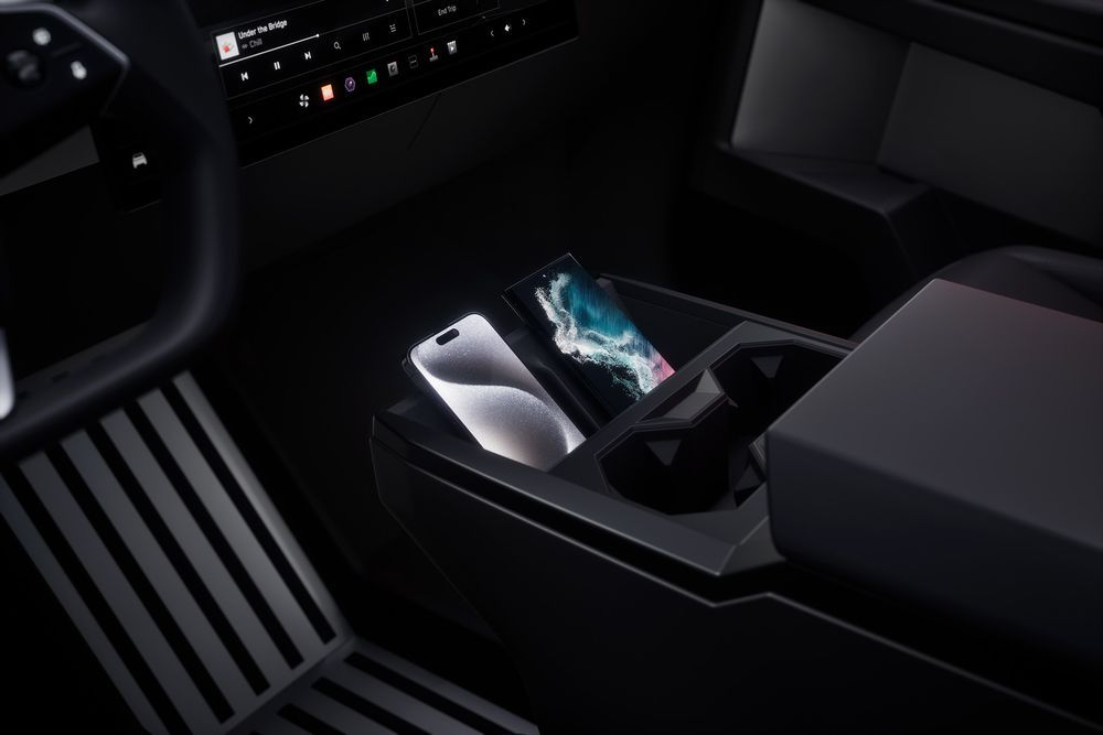 ภายในห้องโดยสารของ Tesla Cybertruck โดดเด่นด้วยหน้าจอมัลติฟังก์ชั่นขนาด 18.5 นิ้ว ที่ทำหน้าที่เป็นคอมพิวเตอร์สำหรับทุกการกระทำของตัวรถ เฉกเช่นรถยนต์ไฟฟ้า Tesla รุ่นอื่นๆ ที่มีอยู่ในตอนนี้ และมาพร้อมกับจอด้านหลังระบบสัมผัสขนาด 9.4 นิ้ว