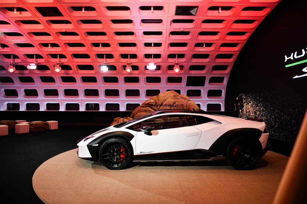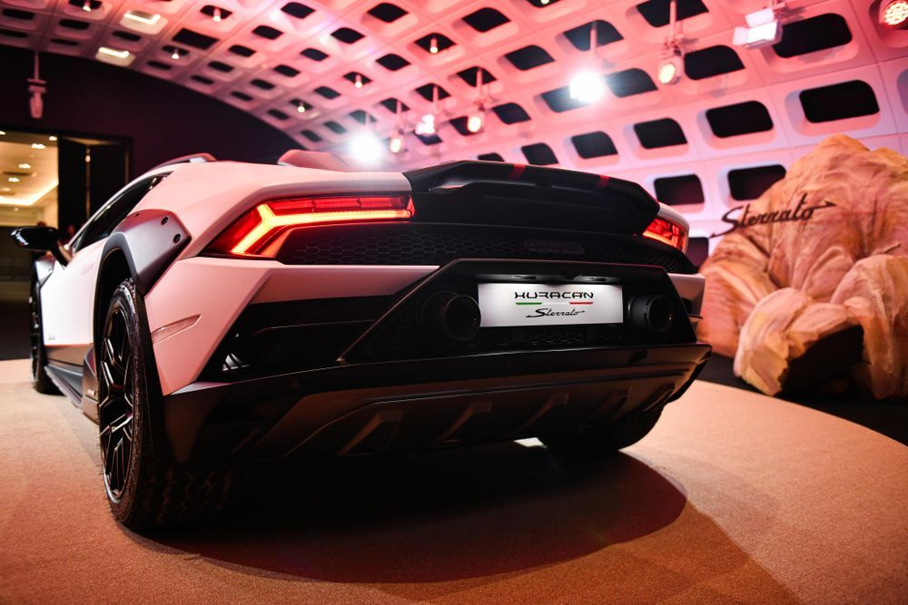 การออกแบบภายนอกสะท้อนถึงจิตวิญญาณแห่งการผจญภัยของ Sterrato ได้อย่างชัดเจนตั้งแต่แรกเห็น โดยมีการเพิ่มระยะความสูงใต้ท้องรถขึ้นอีก 44 มม. เมื่อเปรียบเทียบกับรุ่น Huracán EVO เพื่อการันตีว่าระบบกันสะเทือนจะทำงานได้ดียิ่งขึ้น พร้อมเพิ่มความกว้างช่วงล้อหน้า 30 มม. และล้อหลัง 34 มม. นอกจากนี้ เพื่อการปกป้องตัวถัง ยังติดตั้งแผ่นอลูมิเนียมใต้ท้องรถส่วนหน้า แผ่นธรณีประตูรถแบบเสริมแรง ดิฟฟิวเซอร์ท้าย และซุ้มล้อทรงดุดันเพื่อเสริมภาพลักษณ์ที่บึกบึนสมชาย อีกทั้งยังติดตั้งท่อลมเข้าแบบคลาสสิกบนฝากระโปรงหลังซึ่งไม่เพียงช่วยเสริมจิตวิญญาณแบบรถสปอร์ต หากยังช่วยให้อากาศบริสุทธิ์ไหลเข้าสู่เครื่องยนต์เมื่อต้องวิ่งบนลู่แข่งที่มีฝุ่นดินเยอะ