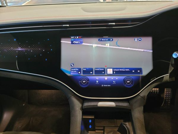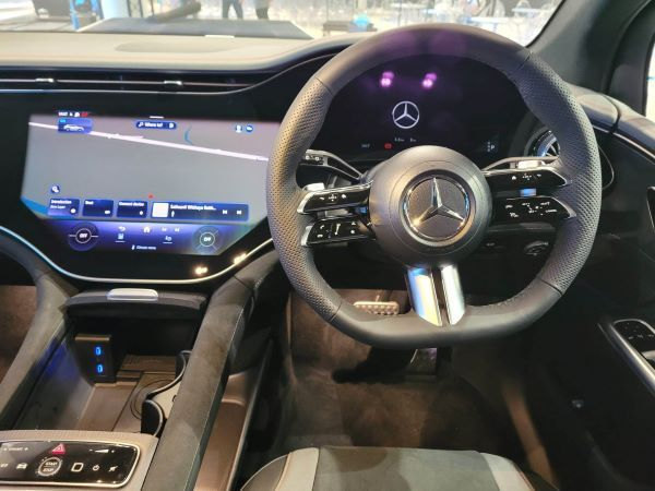 • EQE 350 4MATIC SUV AMG Line จะตกแต่งภายในห้องโดยสารแบบ AMG interior ติดตั้งเบาะนั่งแบบ Sport Seats และพวงมาลัยมัลติฟังก์ชันแบบสปอร์ตหุ้มหนัง Nappa มาพร้อมหน้าจอ MBUX Hyperscreen ที่มีขนาดหน้าจอรวม 56 นิ้ว สามารถแสดงผลได้อย่างชัดเจนยิ่งขึ้น โดยแบ่งหน้าจอการใช้งานเป็น 3 หน้าจอหลัก ได้แก่ Driver display 12.3 นิ้ว หน้าจอ Central Display 17.7 นิ้ว และหน้าจอ Co-driver display 12.3 นิ้ว