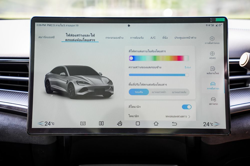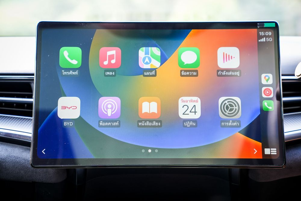 - หน้าจอสัมผัสแบบหมุนได้ขนาด 15.6 นิ้ว ความละเอียดสูงถึง 1080P (1920×1080) ขอบจอบาง 5.9 มม. รองรับ CarPlay สำหรับอุปกรณ์ IOS หรือ Android Auto10 พร้อมหน้าหลังพวงมาลัย LCD ขนาด 10.25 นิ้ว