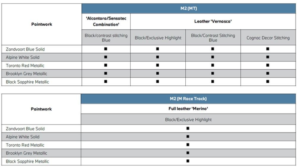 BMW M2 มีให้เลือก 5 สี ได้แก่