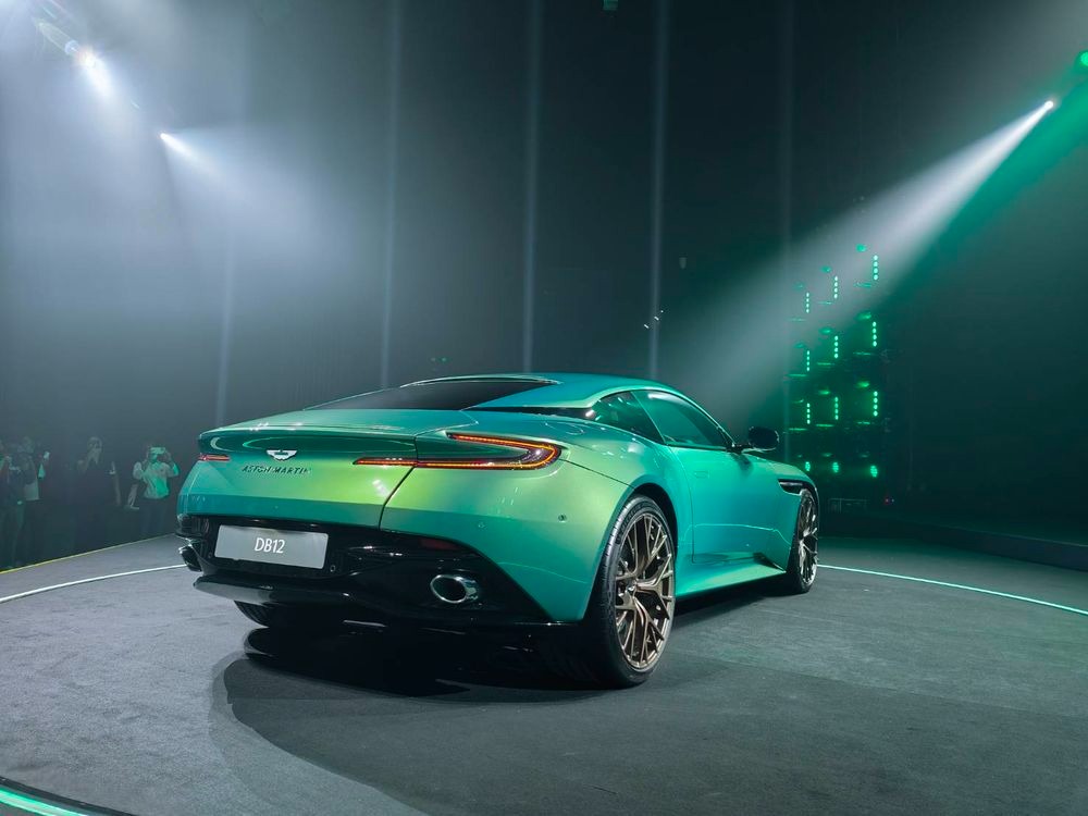 ขุมพลังของ Aston Martin DB12 เป็นเครื่องยนต์เบนซิน V8 ทวินเทอร์โบ 4.0 ลิตร จับคู่กับเกียรอัตโนมัติ 8 จังหวะ (ZF 8HP7S) ให้แรงม้าสูงสุดที่ 680 แรงม้า ที่ 6,000 รอบต่อนาที แรงบิดสูงสุด 800 นิวตันเมตร ที่ 2,750-6,000 รอบต่อนาที ทำอัตราเร่ง 0-100 กม./ชม. ได้ภายใน 3.6 วินาที ความเร็วสูงสุดอยู่ที่ 325 กม./ชม.