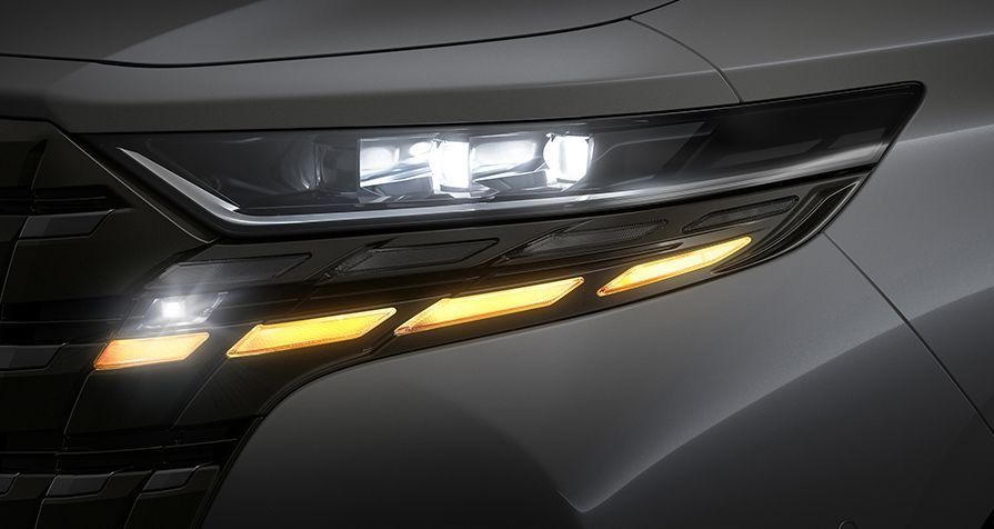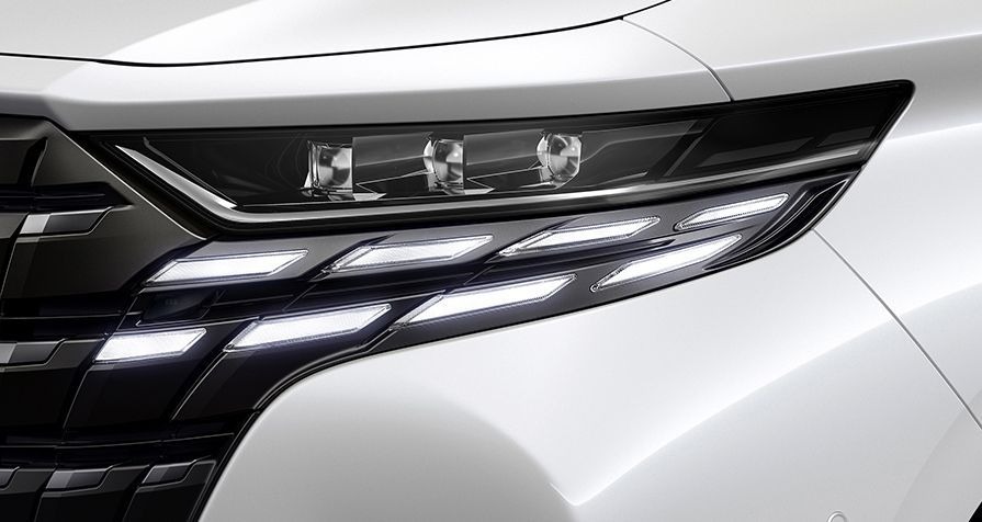 Alphard จะเป็นทรงตารางขนาดใหญ่ตัดกับโคมเมียม พร้อมไฟ Daytime Running Light แบ่งเป็นหลายดวง