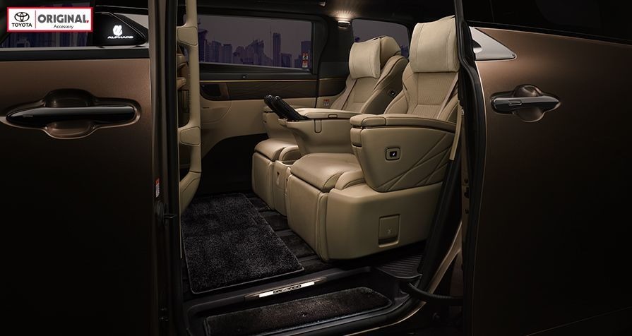 ห้องโดยสารแถวที่2 ช่องแอร์ด้านหลังที่ติดตั้งบนหลังคาถูกย้ายจากด้านข้างมาไว้ที่กึ่งกลางเพดาน มาพร้อมหลังคากระจกแบบแยกฝั่งซ้ายขวา ซึ่ง Toyota เรียกว่า “Super-Long Overhead Console” รวมถึงแผงสวิตช์ควบคุมการเปิด – ปิดประตูสไลด์ และสวิตช์ควบคุมม่านบังแดดด้านข้างแบบเลื่อนจากบนลงล่าง