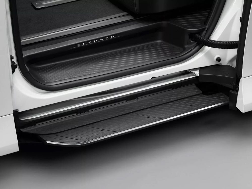 Alphard และ Vellfire ยังมาพร้อมกับ “บันไดอเนกประสงค์” แบบ Universal Steps ซึ่งหดกลับโดยอัตโนมัติทั้ง 2 ด้าน ทำให้เด็กและผู้สูงอายุเข้าถึงห้องโดยสารได้ง่ายขึ้น รวมถึงช่องบานประตูคู่หลังถูกออกแบบให้กว้างขึ้นเป็น 820 มิลลิเมตร พร้อมติดตั้งมือจับบริเวณเสา B-Pillar ความยาว 620 มิลลิเมตร มือจับบริเวณเพดานหลังคา ความยาว 315 มิลลิเมตร เพื่อความสะดวก