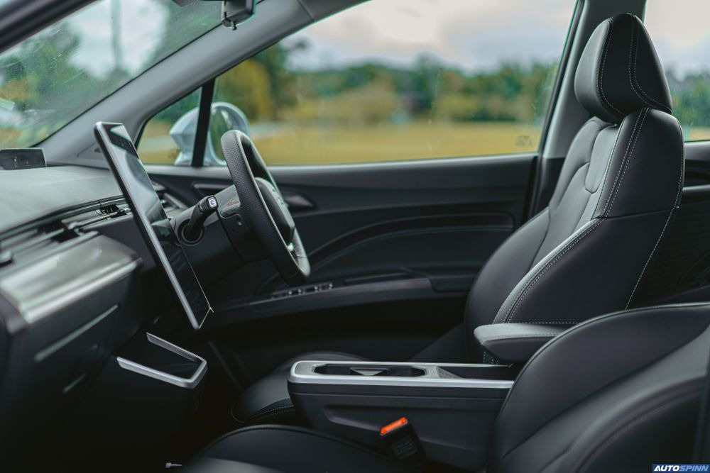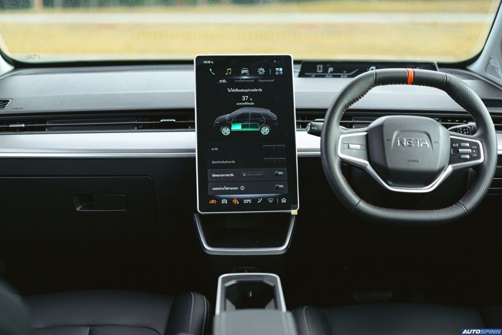 พวงมาลัยไฟฟ้ามัลติฟังก์ชั่น ปรับระดับไม่ได้ ส่วนระบบเกียร์อยู่ที่ก้านพวงมาลัยด้านขวา ใช้งานรูปแบบเดียวกับรถยนต์ Tesla, Mercedes-Benz