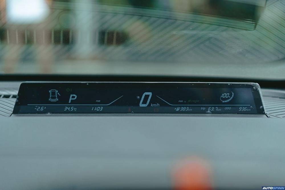 หน้าจอเรือนไมล์ของตัวรถเป็นแบบดิจิตอล วางเป็นแนวยาวอยู่ด้านบนของคอนโซล บอกข้อมูลการขับขี่ครบครัน โดยวางตำแหน่งเหมือนกับ Head Up Display ทำให้เราไม่ต้องละสายตาจากถนนมาที่เรือนไมล์เลย