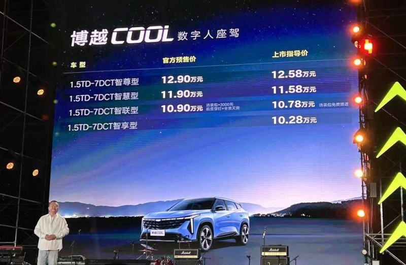 ทั้งนี้ Geely Boyue Cool ใช้ขุมพลังด้วยเครื่องยนต์เบนซิน 4 สูบเทอร์โบ 1.5 ลิตร ไดเรกอินเจคชัน ให้กำลังสูงสุด 178 แรงม้า แรงบิด 290 นิวตันเมตร จับคู่เกียร์อัตโนมัติ DCT 7 สปีด อัตราเร่ง 0 – 100 กม./ชม. ใน 7.9 วินาที และอัตราสิ้นเปลืองน้ำมันเฉลี่ยอยู่ที่ 6.29 ลิตร/100 กม. ตามมาตรฐาน WLTC (เฉลี่ยอยู่ที่ 15.9 กม./ลิตร) ส่วนราคาจำหน่ายเริ่มต้นที่ 102,800 – 125,800 หยวน (ประมาณ 507,000 – 620,000 บาท ไม่รวมภาษี)