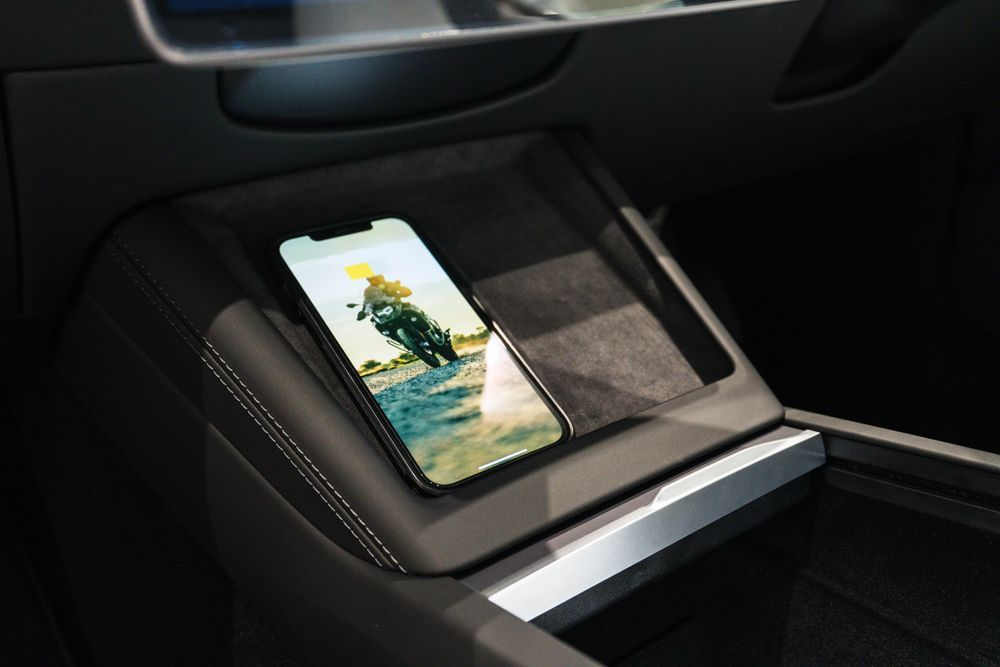โดยด้านใต้จอ มีแท่นชาร์จมือถือแบบไร้สายมาให้ 2 ตำแหน่ง